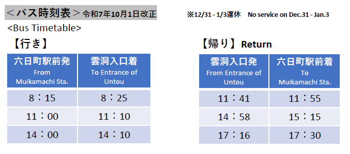 Untouan 浦佐駅からの交通機関運行経路 六日町駅からはタクシーで約13分です 六日町駅からのバス時刻表 営業情報 営業時間Open hours(4月中旬~11月 / Apr.-Nov.)9:00~17:00(12月~3月 / Dec.-Mar.) 9:30~16:00※受付は30分前まで所在地Address新潟県南魚沼市雲洞660660 Untou, Minamiuonuma-shi, Niigata-ken 949-6542電 話 Tel025-782-0520定休日 Close水曜日(祝日・お盆・正月等除く)Wednesday駐車場Parking a lotありホームページ・SNSWebsite/SNS 浦佐駅からの経路 Googleストリートビュー タグ 同じテーマで探す際にご利用ください フォトスポット, 塩沢エリア, 寺社仏閣, 文化芸術施設
